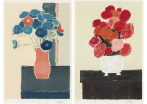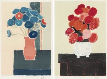 this lot accompanies other works; 【Bouquet of hydrangeas on a gothic desk】(P.366, 1994, 61.5x42cm, ed.75)【Still life with a basket of lemons】(P.213, 1987, 42x64cm, ed.EA), each following details: identical to main item, all framed.* *Not examined out of frame.Condition : attenuated on the illustration, pale toning to the illustration and margins; 【Bouquet of hydrangeas on a gothic desk】: toning and scattered stains to the illustration and margins; 【Still life with a basket of lemons】: some minor ink loss on the illustration, pale toning to the illustration and margins, scattered pale stains in the margins.