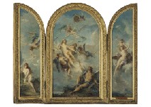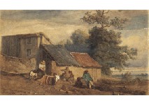 Condition : lined to canvas (verso is not examined), pale toning, scattered stains, pigment shrinkage, some scuff marks, craquelure, minor pigment loss and 1 tear at the image, some restoration to the edges.
