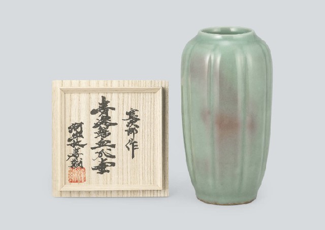 - H22.3xW11.5cm, marked underneath, with a box with kakitsuke by KAWAI Toshitaka.
