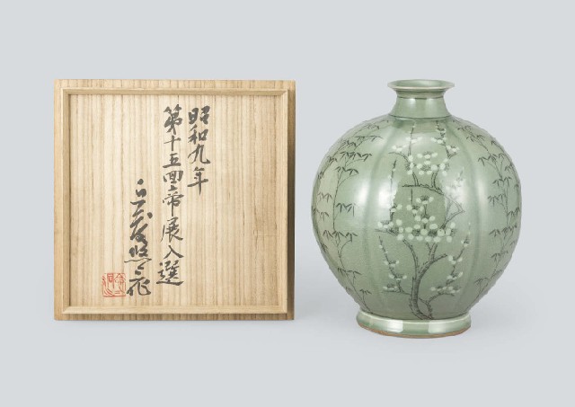 [Lot1124] Inlaid vase with design of plum and bamboo grass