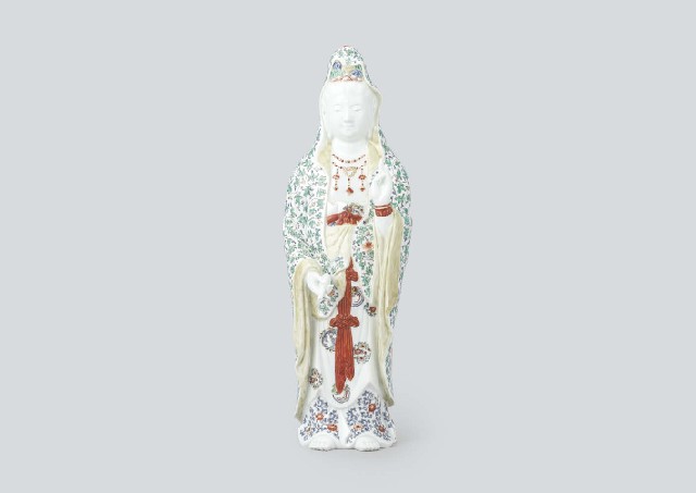 - Kannon Bosatsu ornament with design of arabesque in overglaze enamels