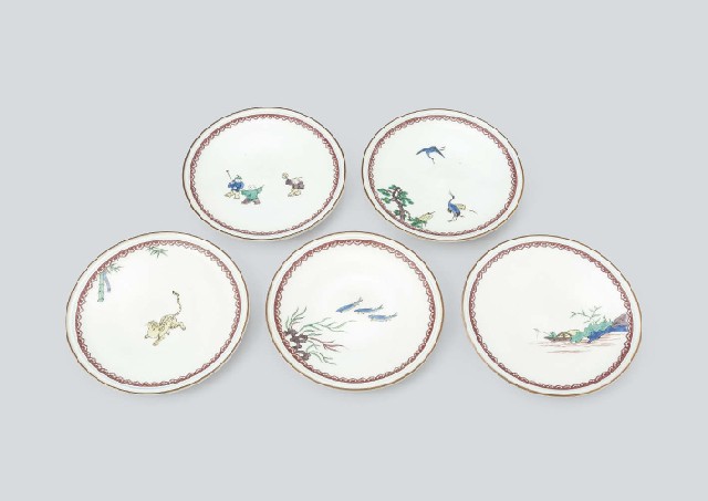 [Lot1154] Ko-kutani styled plate (a set of 5)