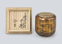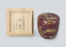 - "Natsume (tea caddy) with design of crane in maki-e lacquer"/H7.9xW7.9cm, "Tea caddy with design of pine tree and bamboo in maki-e lacquer"/H8xW7.3cm, each marked underneath, each with tomobako(the box signed by the artist), each with konomi kakitsuke by SOKUCHUSAI(each marked on the back of lid).