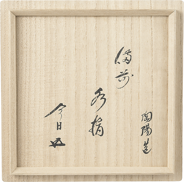 - H16.5xW16cm, marked underneath, with tomobako(the box signed by the artist), with kakitsuke by HOUNSAI, with a spare lid.