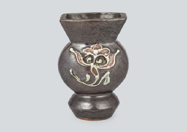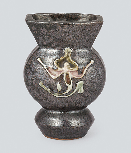 - Flask with design of flower in Tsutsugaki in iron glaze