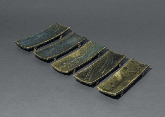 [Lot1221] Oribe rectangular footed plate (a set of 5)