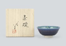 - H8.5xW12.4cm, marked at the side of the foot-ring, with tomobako(the box signed by the artist), with kakitsuke by JIMYOSAI.