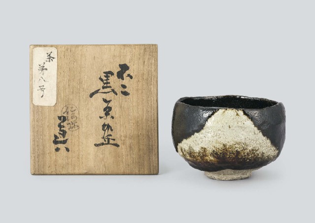 - Black tea bowl with design of Mount Fuji