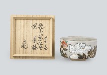- Tea bowl with design of flowers on river
