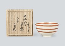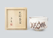 - H7.5xW11.4cm, writing and marked on the side by ENNOSAI, marked at the side of the foot-ring, with a box with kakitsuke by ZABOSAI.