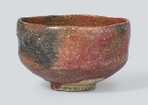 [Lot0203] Red tea bowl with design of character by ENNOSAI