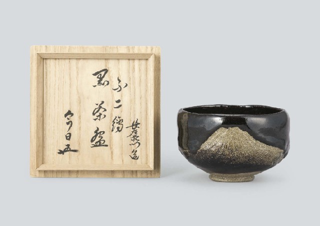 - Black tea bowl with design of Mount Fuji