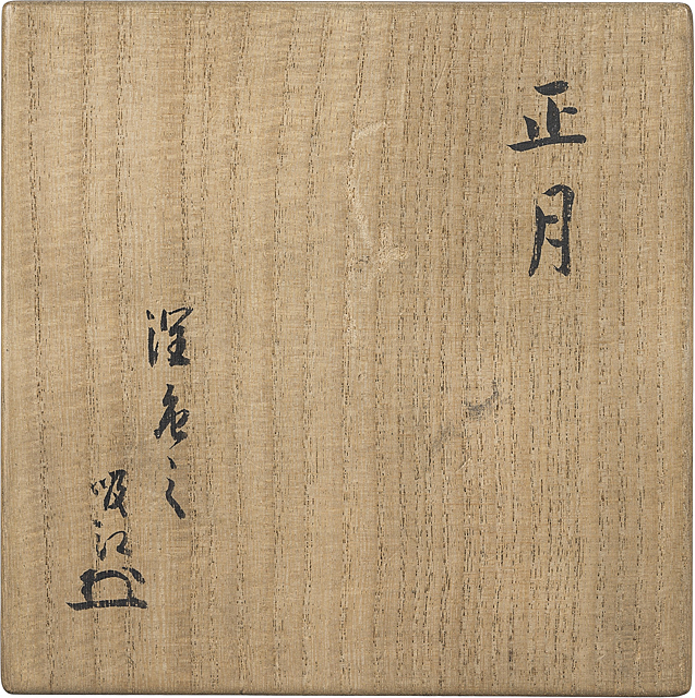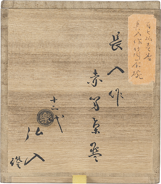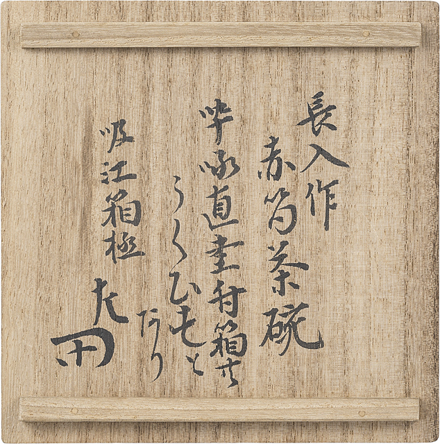 - H9.9xW10.5cm, with a box with kakitsuke by SOTSUTAKUSAI(writing and marked at the side of the foot-ring), with kakitsuke by KYUKOSAI, with a box with kakitsuke by RAKU Konyu XII and SEISAI.