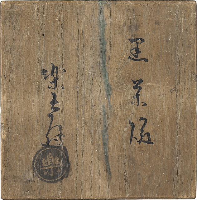 - H8.3xW10.2cm, marked on some places, with tomobako(the box signed by the artist), with a box with kakitsuke by RAKU Kakunyu XIV.