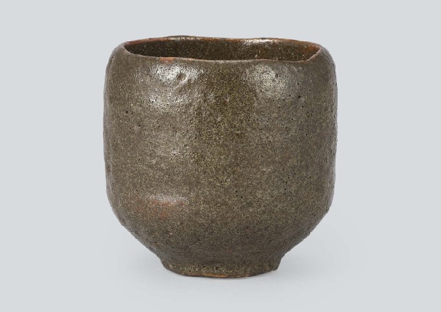 - Cylindrical tea bowl in amber glaze