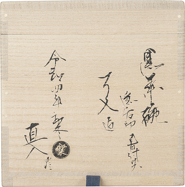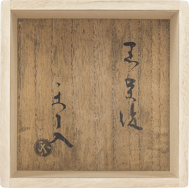 - H8.2xW12.6cm, marked inside the foot-ring, with a box with kakitsuke by SOKUCHUSAI(signed board by the artist is set to the box underneath), with a box with kakitsuke by RAKU Jikinyu XV.