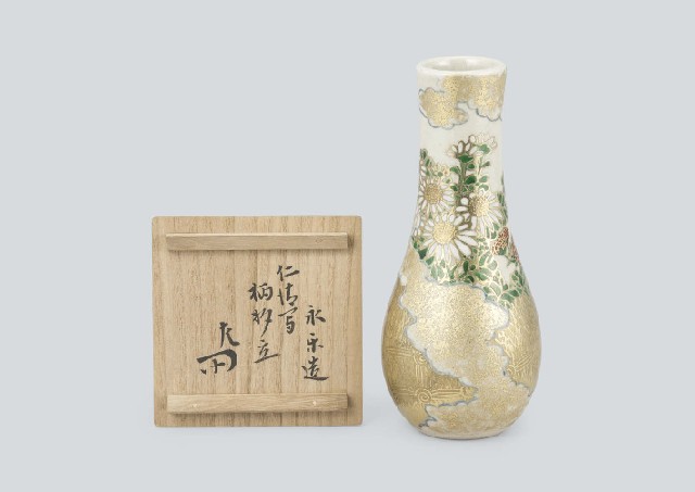 - H18.2xW7.8cm, marked underneath, with tomobako(the box signed by the artist), with kakitsuke by SEISAI.