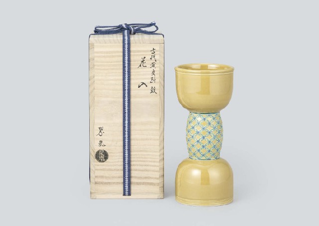 [Lot0356] Yellow kochi hand drum shaped vase
