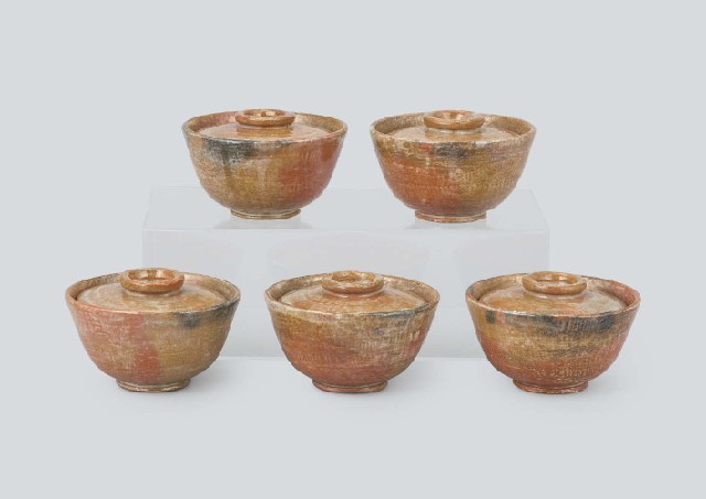 - each size H7.9xW12.5cm, each marked inside the foot-ring, with tomobako(the box signed by the artist).
