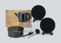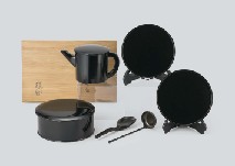 - RIKYU styled black ryoji with round tray (a set of 6)