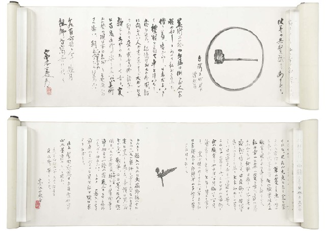 - each ink on paper, signed with a seal of the artist, UPPER/1927, paper size 32.7x478cm, total size 32.9x619.7cm, LOWER/1929, paper size 33.8x408cm, total size 34.3x548.8cm, each with a box with kakitsuke by YAMAMOTO Shigeo.