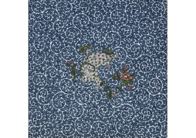 [Lot0449] Ceramic plaque with design of lion and arabesque in underglaze blue and overglaze enamels