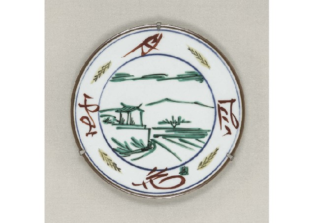 - Ceramic plaque with design of landscape in overglaze emanel