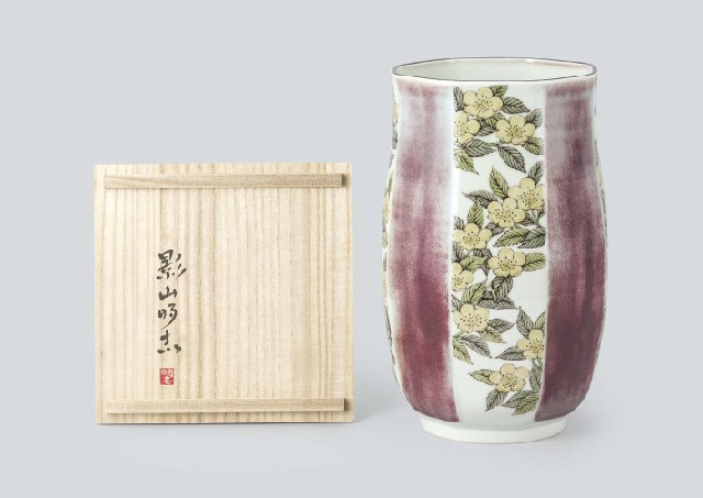 [Lot0471] Faceted jar with design of kerria in overglaze enamel