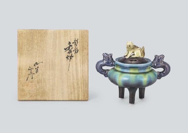 [Lot0536] Color glazed incense burner