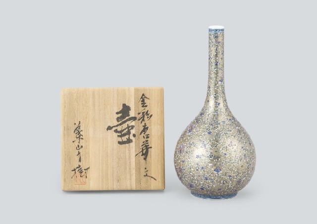 - Jar with design of Chinese flower in overglaze enamel and gold