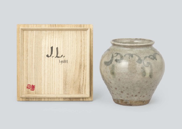 - H15.6xW16.3cm, marked underneath, marked on the side, with a box with kakitsuke by Janet LEACH.
