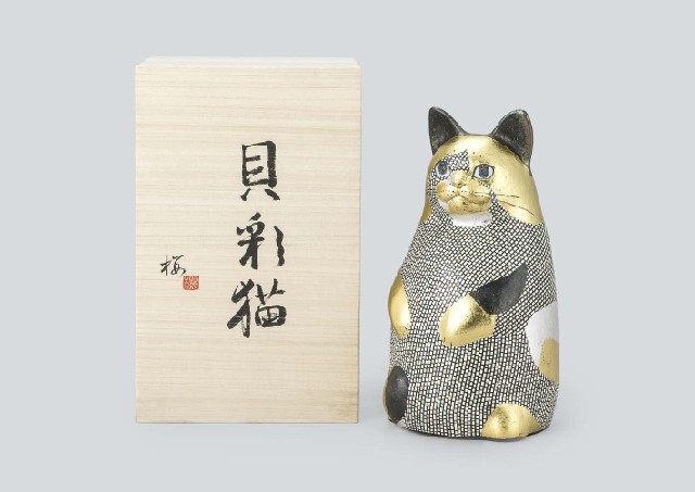 [Lot0724] Ceramic cat in Mother-of-Pearl inlay