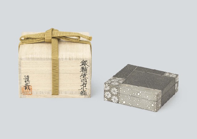 [Lot0780] Small square covered box in silver lacquer
