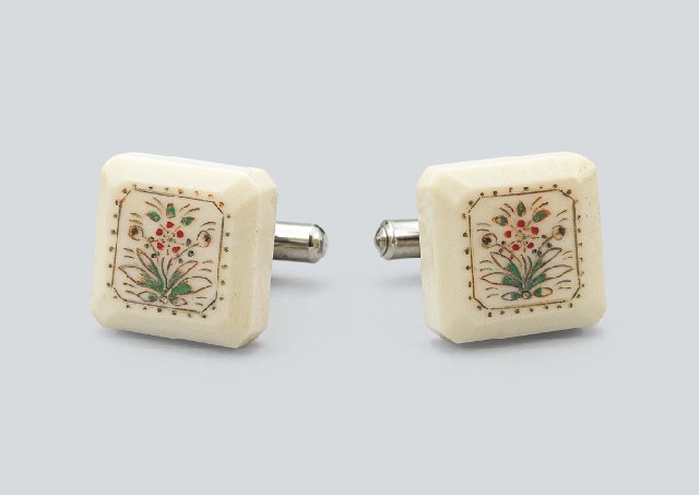 [Lot0794] Ivory bachiru cuffs with Shosoin traditional design