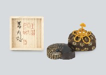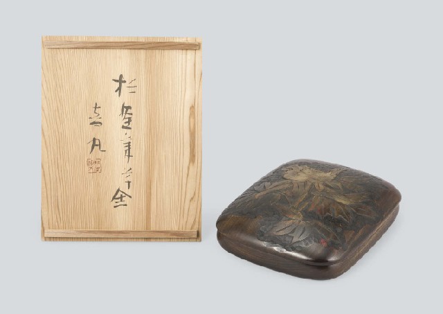 - H6.1xW19.5x25.1cm, marked on the lid, incised underneath, with tomobako(the box signed by the artist), with an inkstone(marked underneath) and a water dropper.