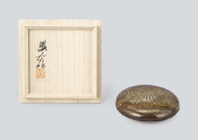 - Incense container with design of seaweed and shell in maki-e lacquer
