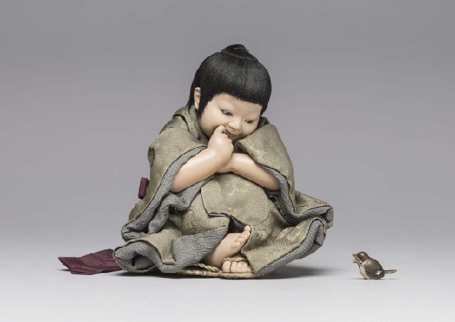 - Issa/H15.1xW17.6x13cm, marked on the right leg, sparrow/H1.8xW3.2x1.2cm, with tomobako(the box signed by the artist).