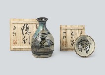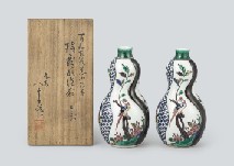 - Gourd shaped sake decanter with design of Nanga styled plants (a set of 2)