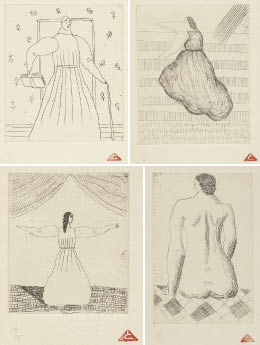 a portfolio of 21 etchings, Shinchosha Print 105-125, 1985, book size 22x17.3cm, all with an atelier stamp and ed.135, printed ed. from 135 regular copies out of total edition of 150 on the justification page, published by Yayoi Gallery, printed on Japon, printed on Ganpi, with an original case.