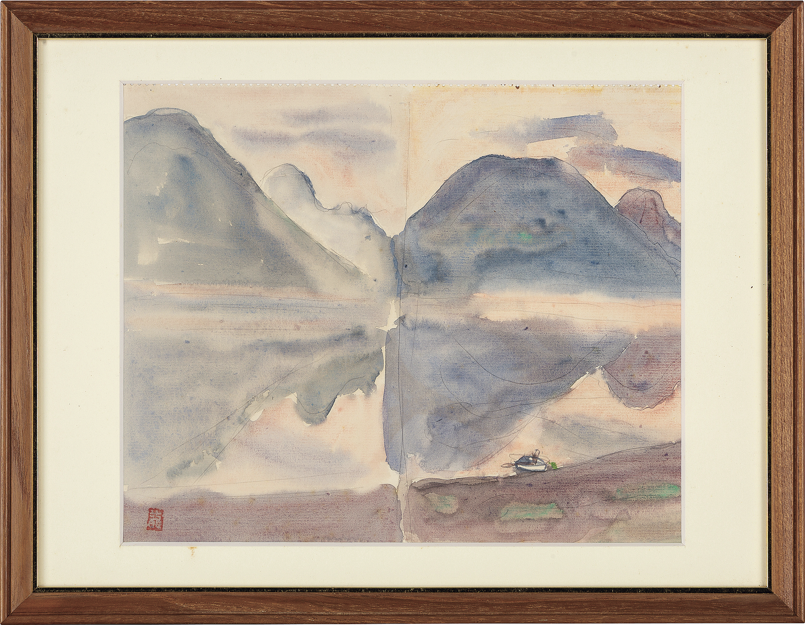 this lot accompanies other works; 【Landscape】(watercolor on paper, paper size 31.8x22.7cm, sealed)【Rural village】(pen on paper, paper size 22.2x32.2cm, sealed), all framed.Provenance :