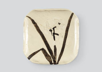 1953, ceramic, H4.6xW25x25cm, signed "KAZUKI Yasuo" underneath, sealed KORAI Tobei XI on the lower side, with a wooden box signed by KORAI Tobei XI.
