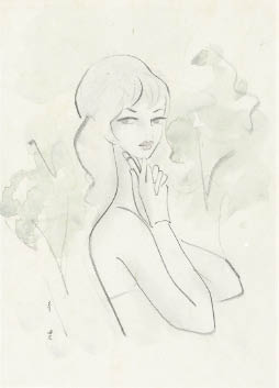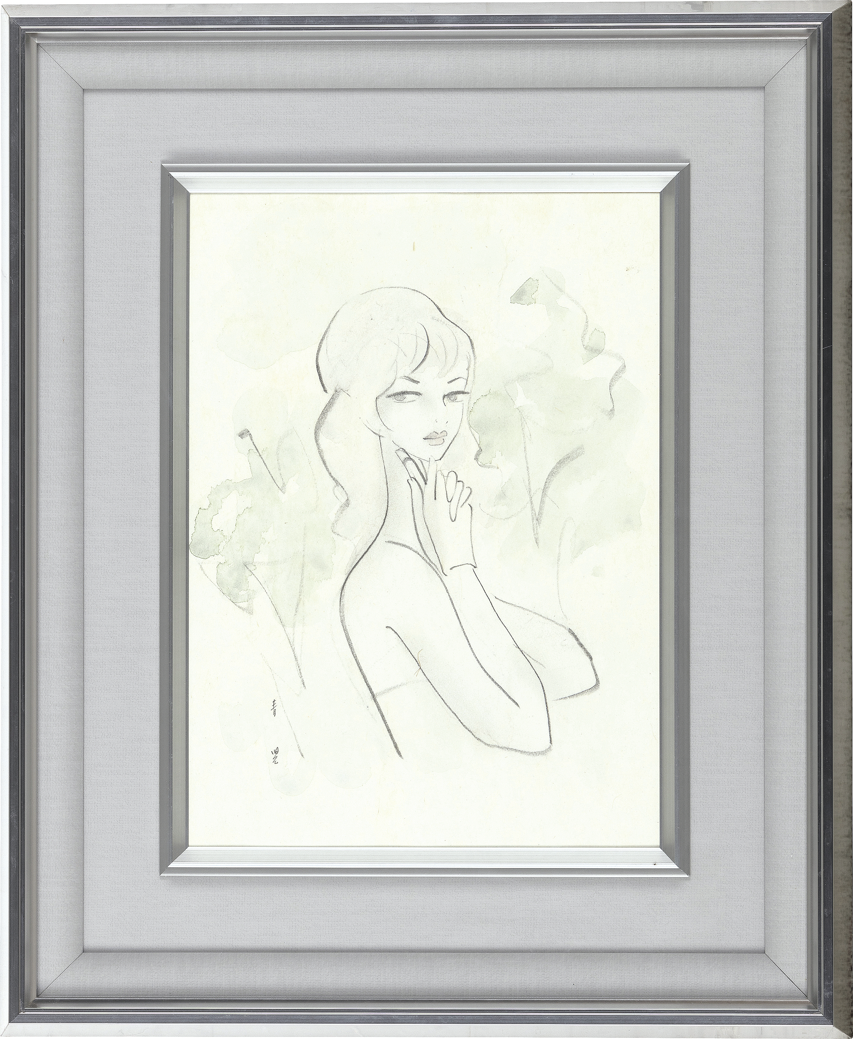 pencil and watercolor on paper board, paper board size 33.2x24.2cm, signed, also signed, sealed and titled on verso, framed.
