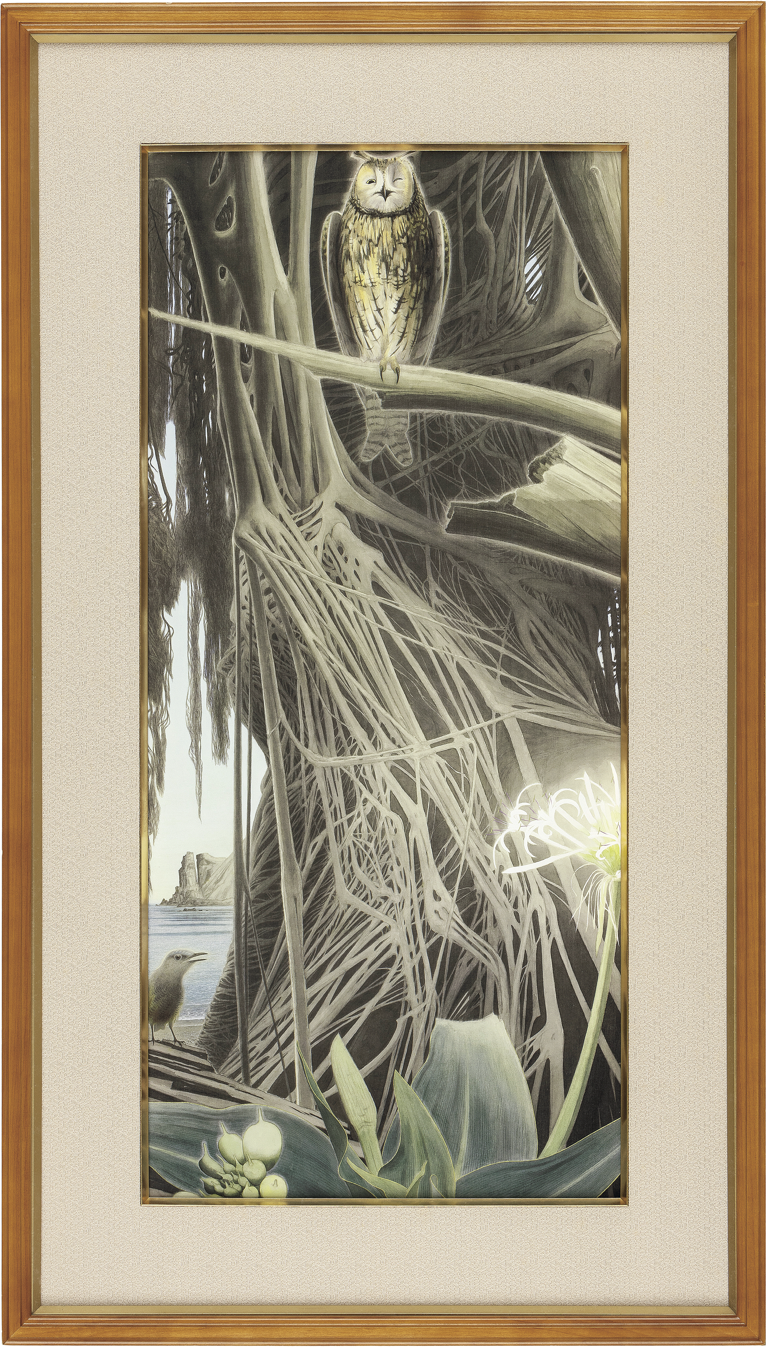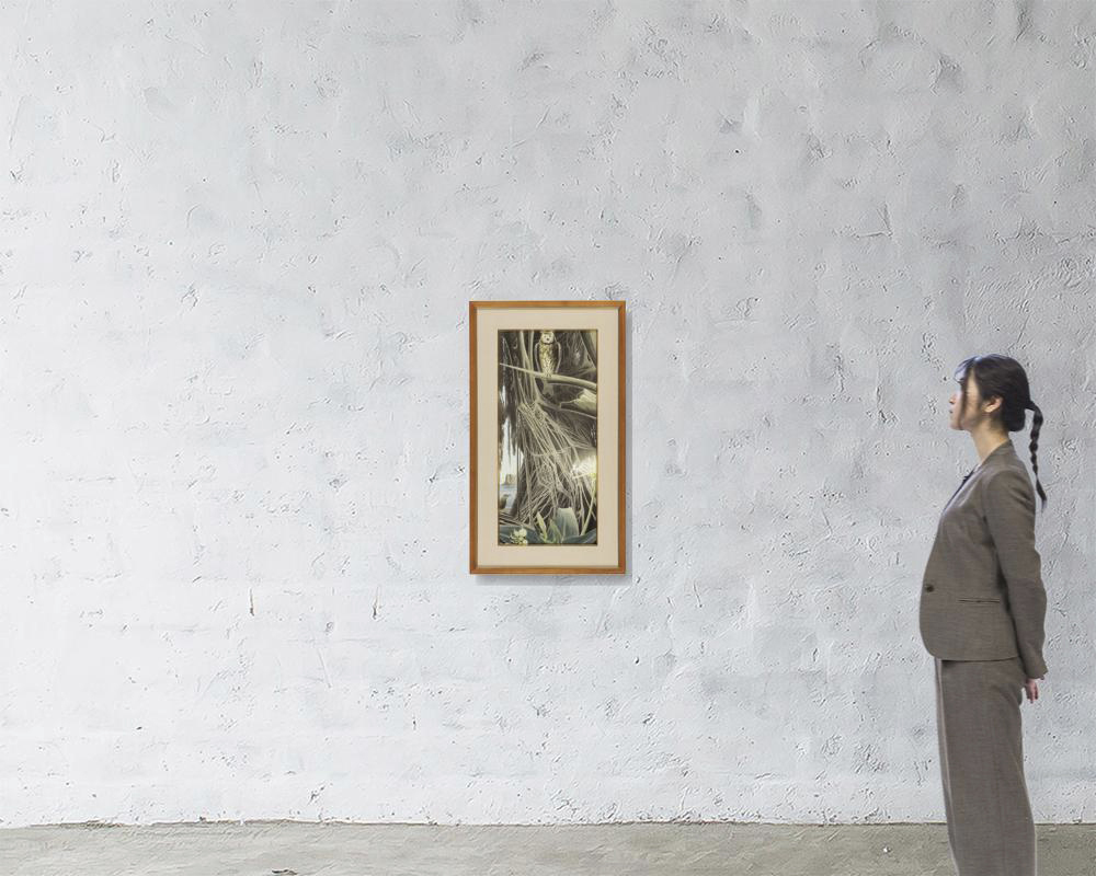 [Lot0051] Banyan trees and long-eared owl (estampe)