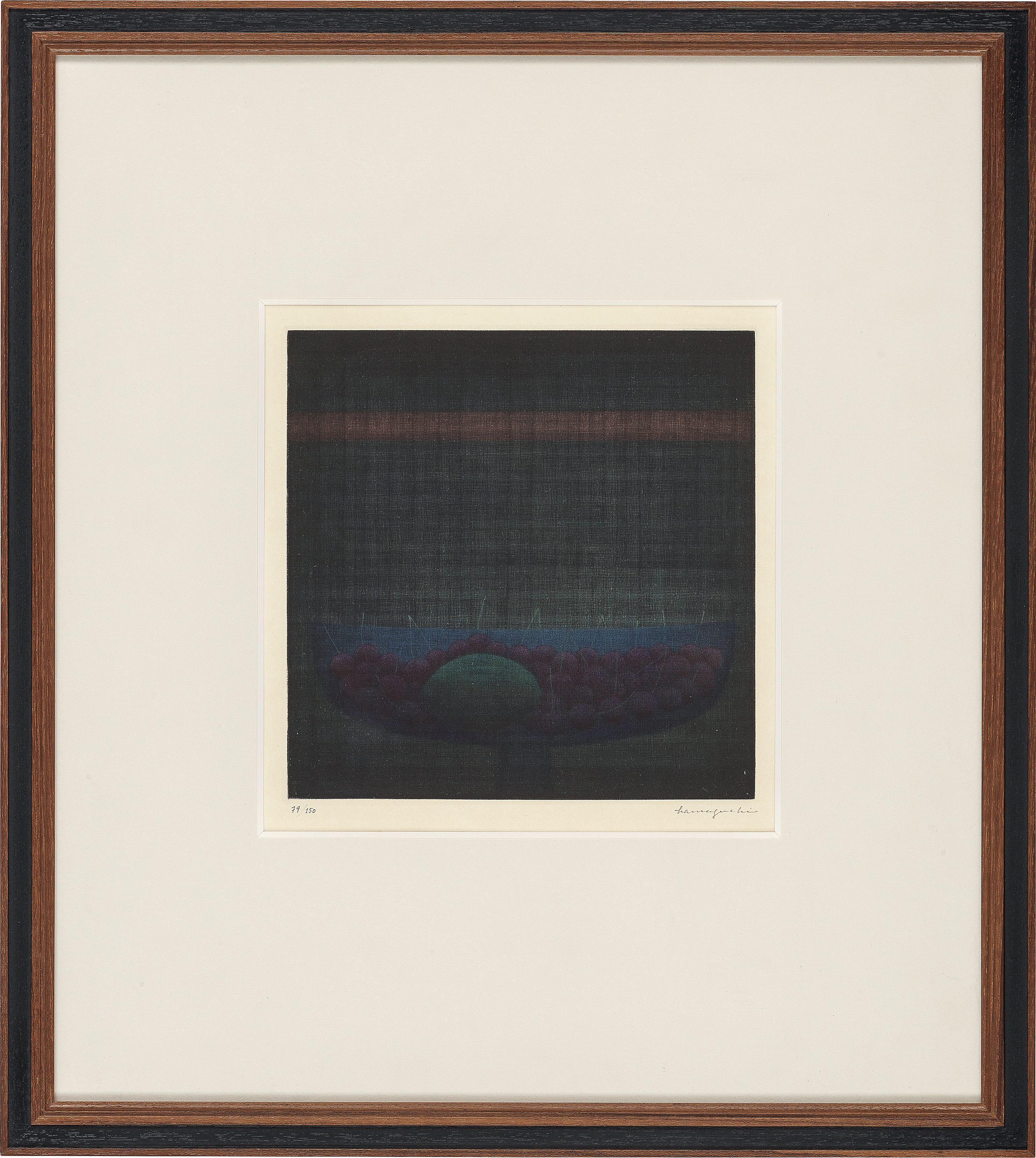 Chuokoron No.74, 1959, color mezzotint, 19.5x19.5cm, signed, ed.150, framed.* *Not examined out of frame.
