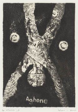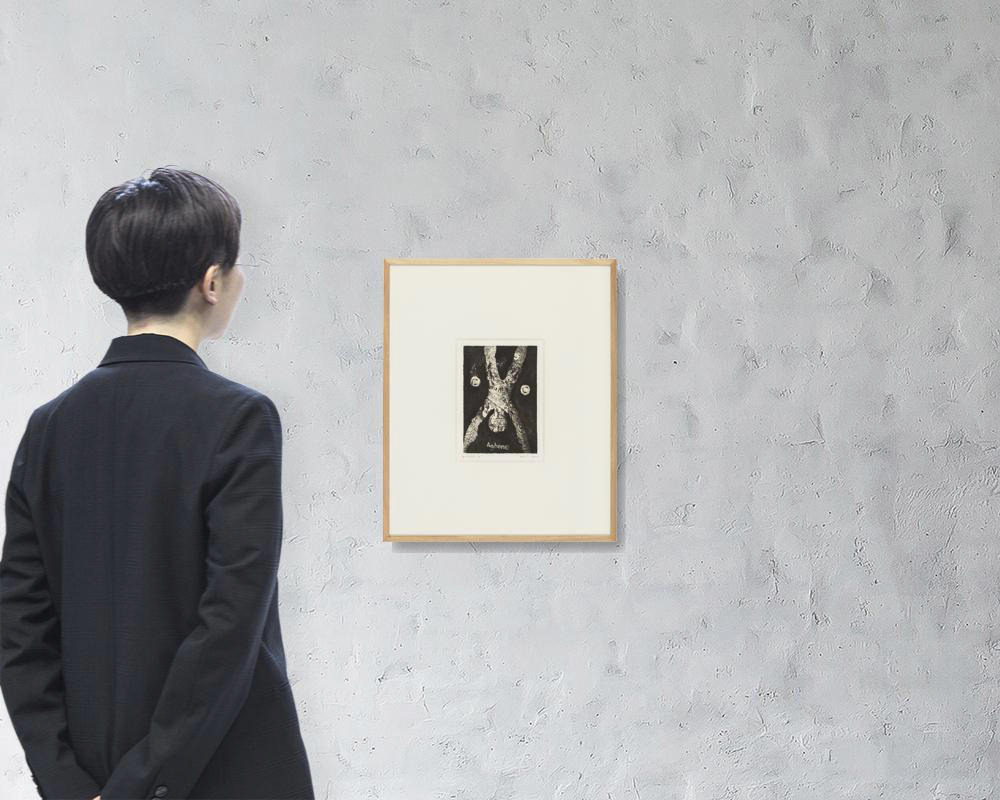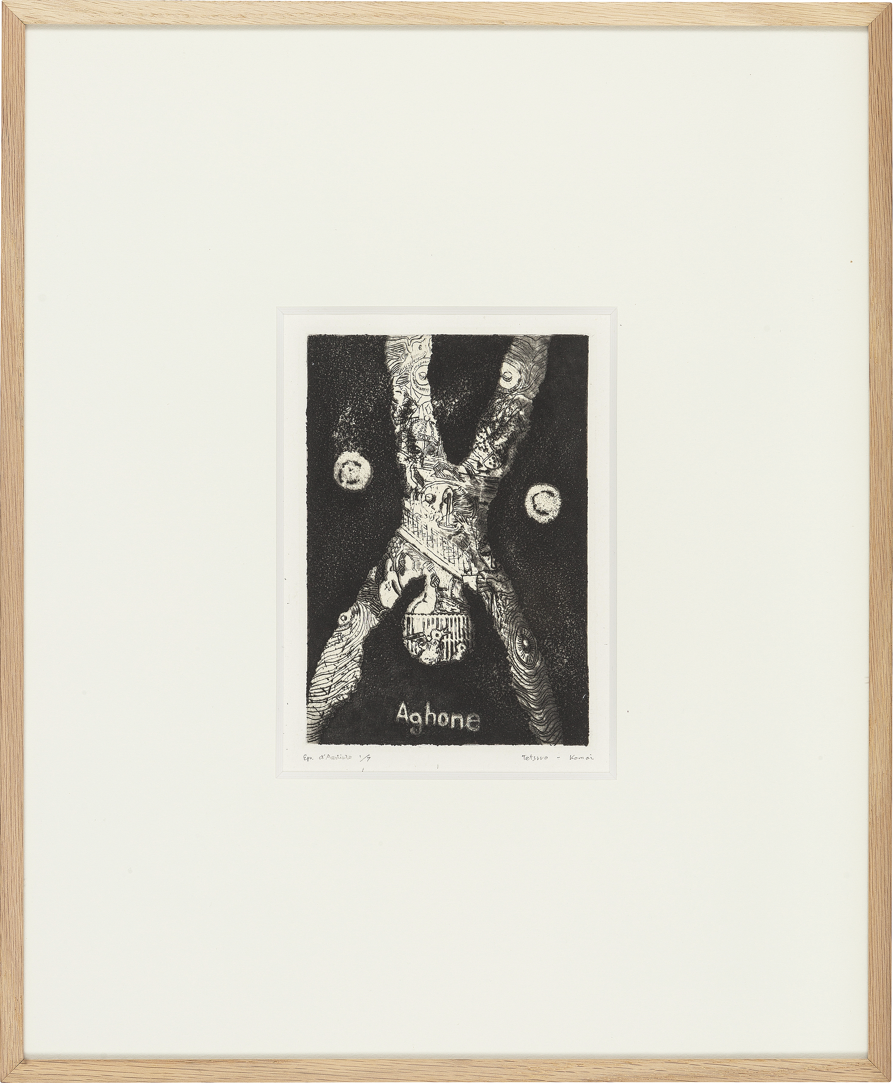 Bijutsushuppansha No.53, 1951, etching and aquatint, 16.9x11.7cm, signed, ed.EA7, Ganpi print, framed.