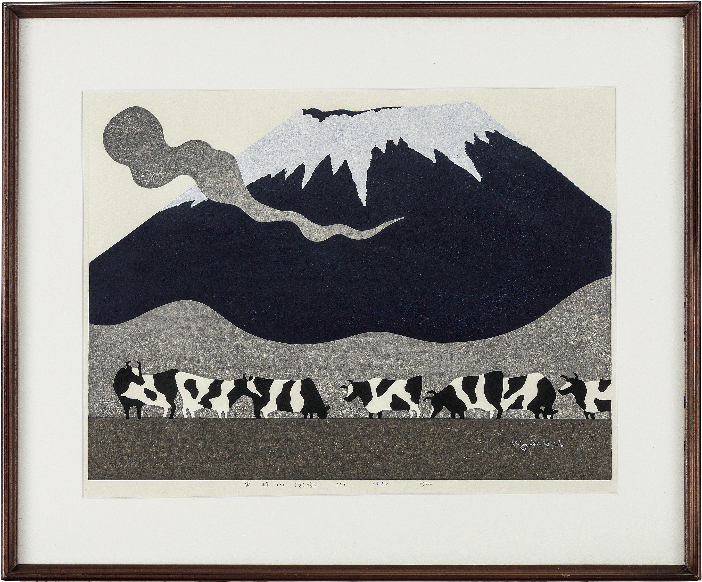 ABE publishing No.154, 1980, woodcut, 45.5x61.5cm, signed, ed.100, sheet size 53.5x69cm, framed.