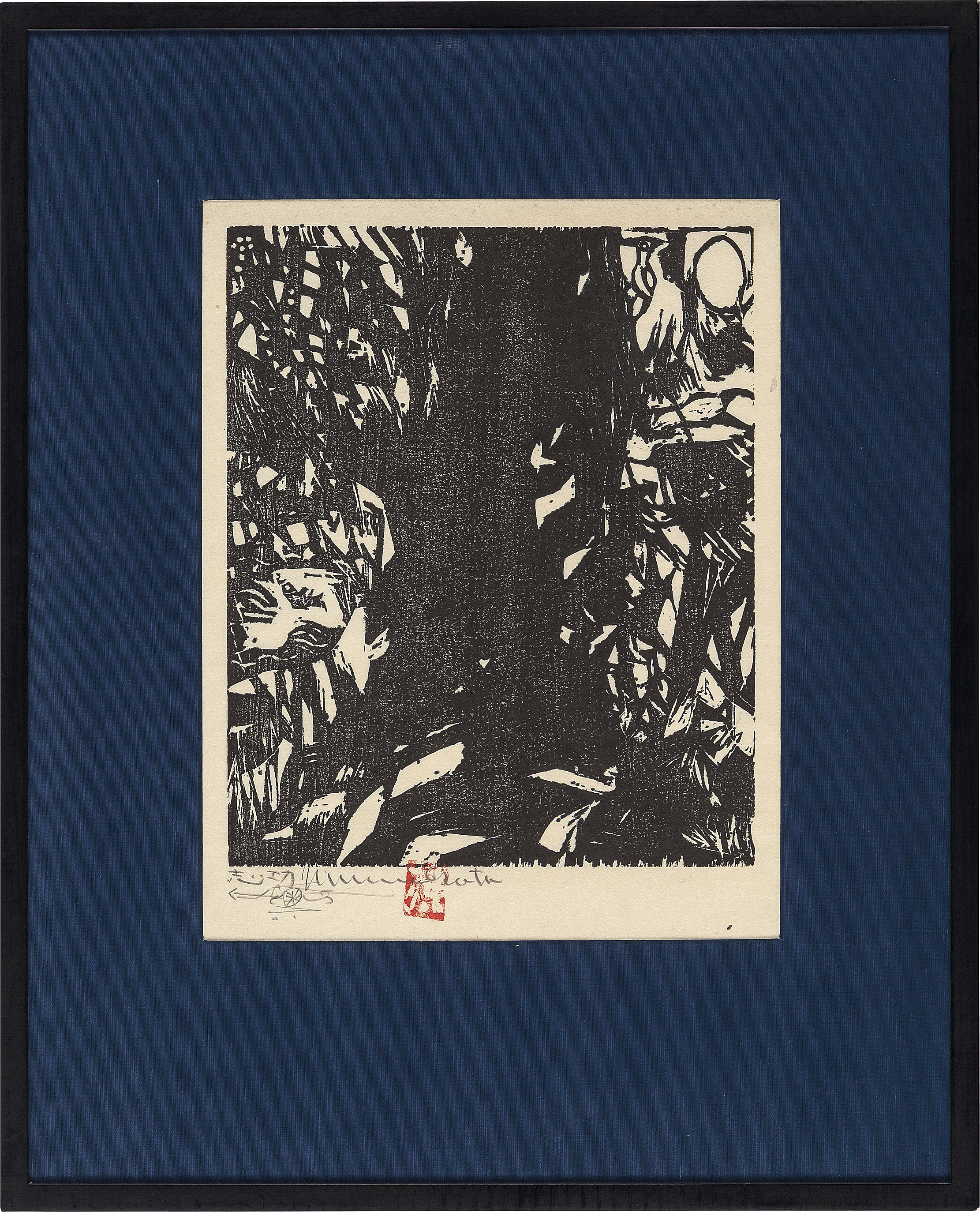woodcut, 35.3x29.1cm, signed and sealed, sheet size 61.5x47.5cm, framed.