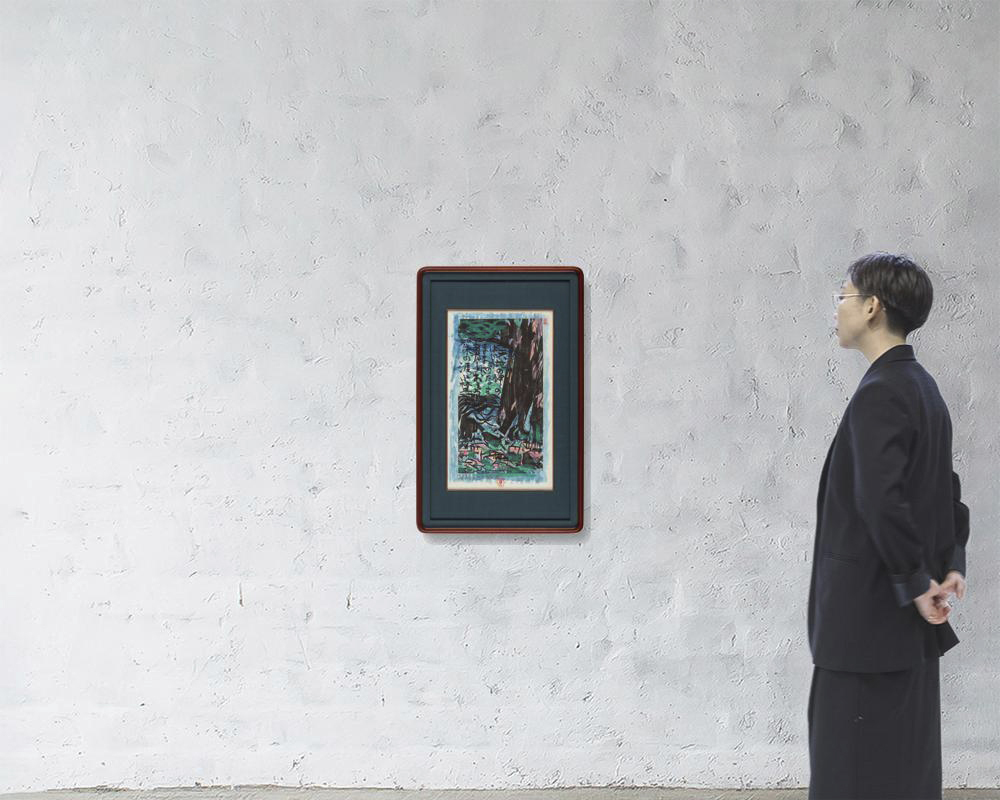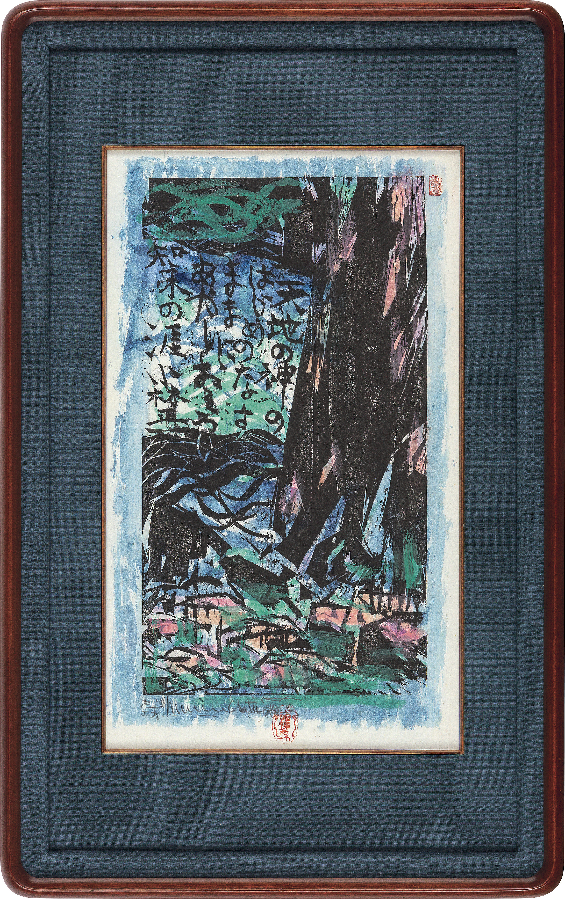 Kodansha vol. 6 No.166, 1969, woodcut with hand-color from verso, 41.9x23cm, signed and sealed, sheet size 52.4x33cm, framed.