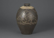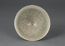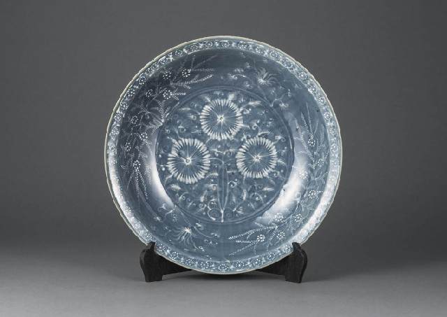 [Lot0116] Large plate with design of grass and flower in azure glaze