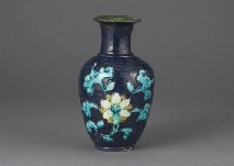 - Large plate with design of grass and flower in azure glaze